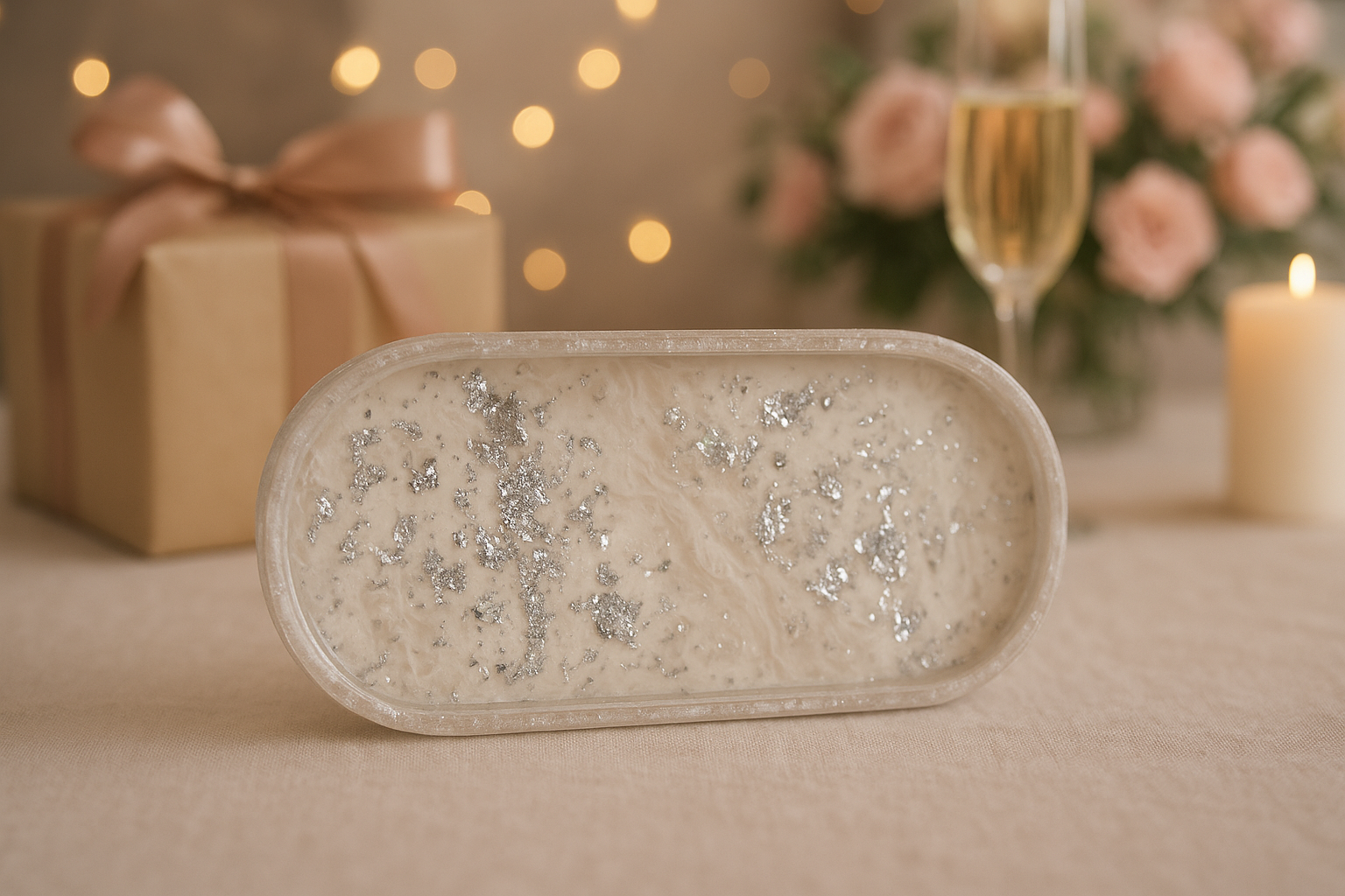 Hand-Poured Resin Décor Tray with Silver Leaf