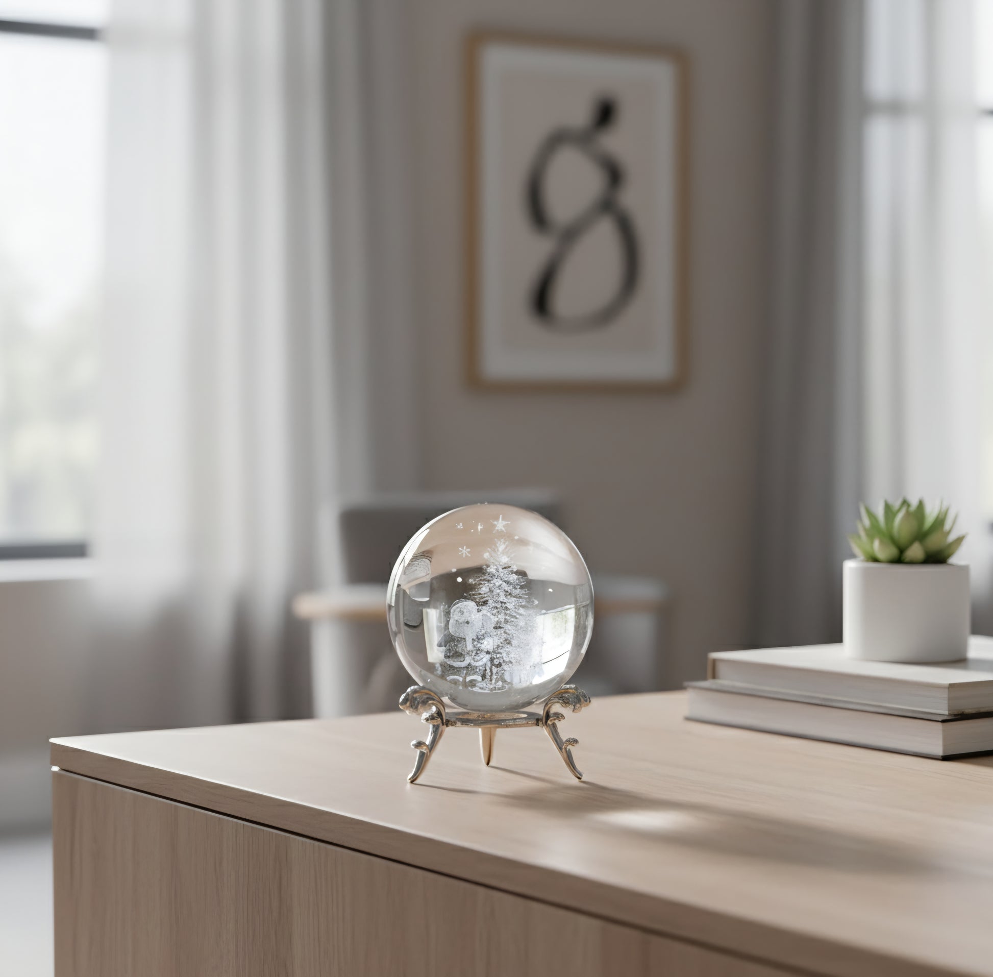 Bring handcrafted beauty into your home with this meticulously detailed crystal ornament. The 3D laser engraving of Santa and a Christmas tree is captured within high-quality glass, creating a breathtaking illusion. Finished with a contemporary silvery base, this classic piece is a timeless addition to your home décor and a cherished gift for any special day.